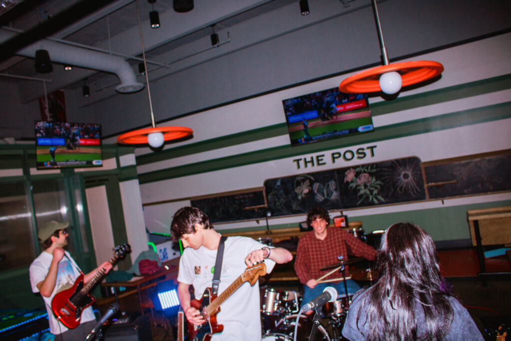 Kyrakirby is a Philly-based indie and alt-rock band made up of four graduating seniors: Logan Troeger (drums), Ryan Levan (bass), Eric Sauselein (guitar), and Nat Langanas (vocals/guitar). The group formed about a year ago after meeting in class and bonding over a shared love for playing, creating, and performing music. Kyrakirby started when Nat shared a piece she had written with Logan, who suggested they pitch it to Bell Tower. Although Nat was hesitant about the idea, he went for it anyway, and just like that- the band was born. Their sound is fluid and ever-evolving, shaped by each member’s distinct style and complementary talents. No matter the mood or direction of a song, the band describes their sonic palette as a mix between dark green and dusty pinkish purple. At the heart of their music is a sense of nostalgia and reflection—on relationships, change, and the emotions that come with the different stages of life. They thrive on long recording sessions and strong creative communication, often building melodies together by ear and instinct. As they prepare to graduate this May, Kyrakirby hopes to keep performing and making music together wherever life takes them.